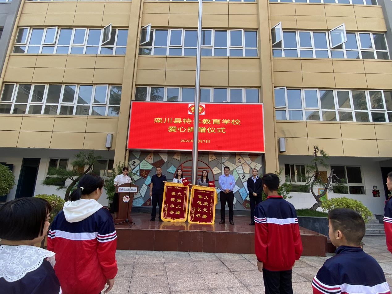9月2日,栾川县侨联联系中钛集团洛阳市金红石钛业有限公司、栾川县瑞玺实业有限公司两家侨界爱心企业到栾川县特殊教育学??拱木柙疃h锎ㄏ卣敝飨墙ň渭踊疃?,栾川县委统战部副部长、民宗局局长尤强和栾川县侨联主席石彩娟出席活动。