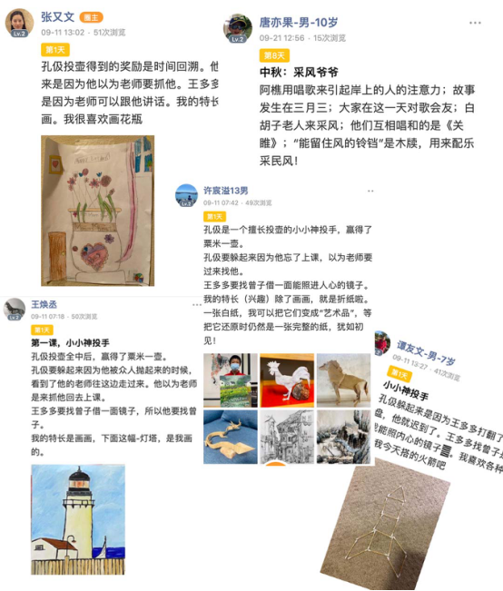 本期秋令营活动中,营员们不仅聆听了先锋人物袁隆平、三字经、荒野大冒险之海岛求生等故事音频,还通过云端游览了殷墟、中国文字博物馆、红旗渠等中国华侨国际文化交流基地,切身感受中华传统文化魅力。