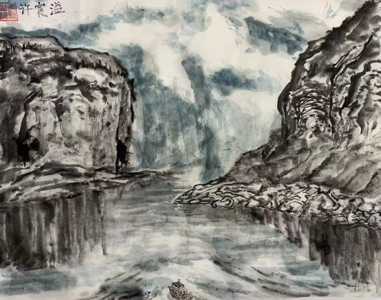 中国画《江水入海秋月明》唐亦果 11岁