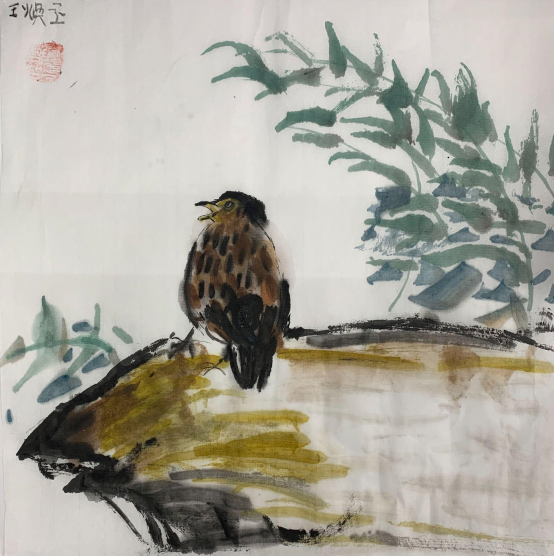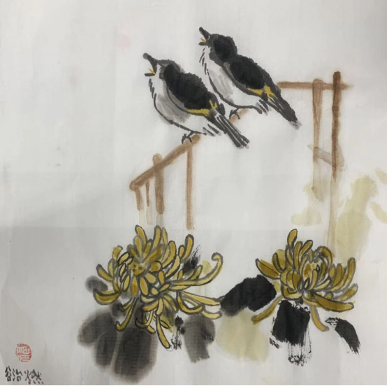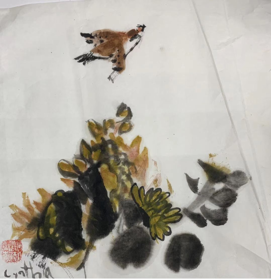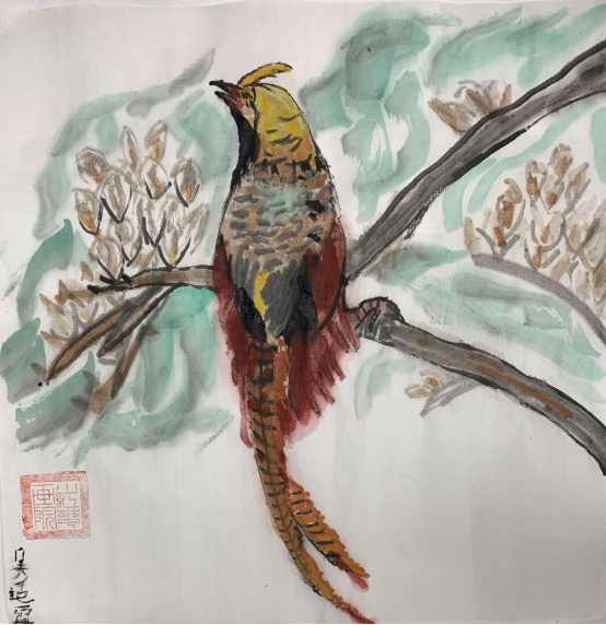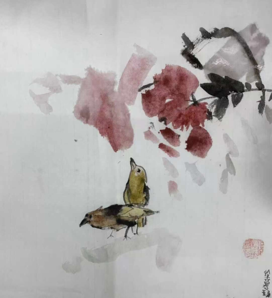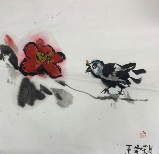 中国画《明月惊鹊花似云》Chloe 4岁