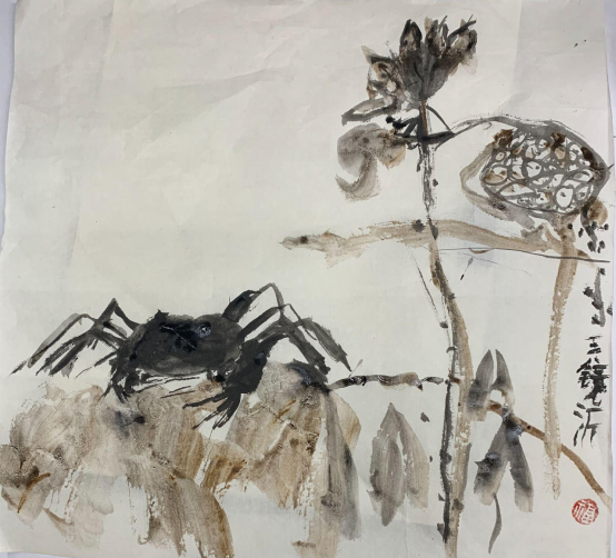 中国画《残荷肥蟹》王镜沂 9岁