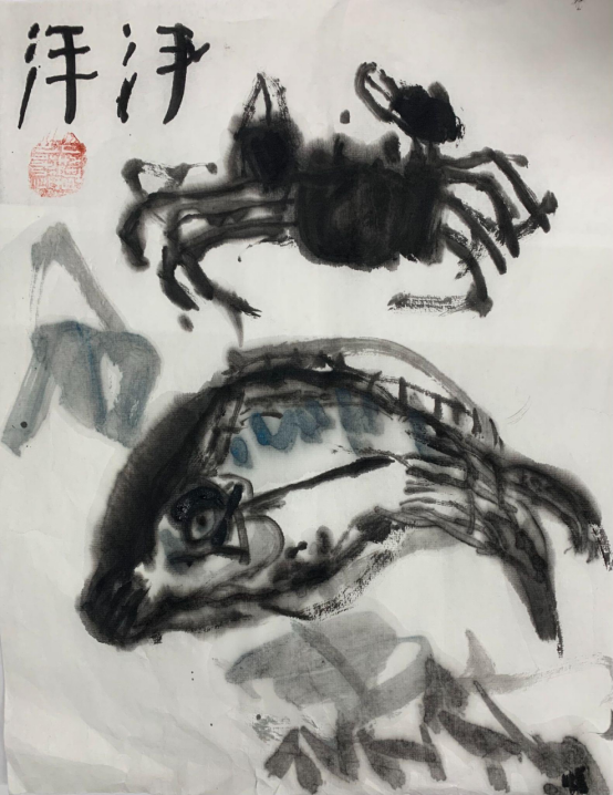 国画《中秋河鲜》洋洋 6岁