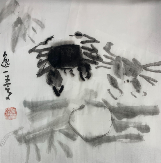 中国画《秋蟹探月》逸一 5岁