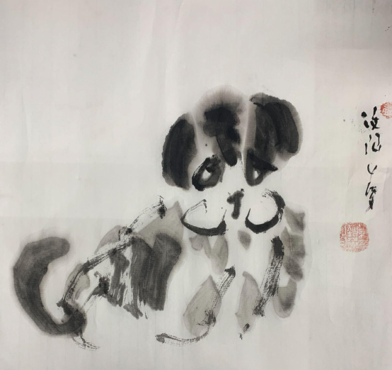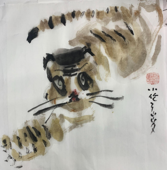 中国画《虎啸山月》小伦 3岁