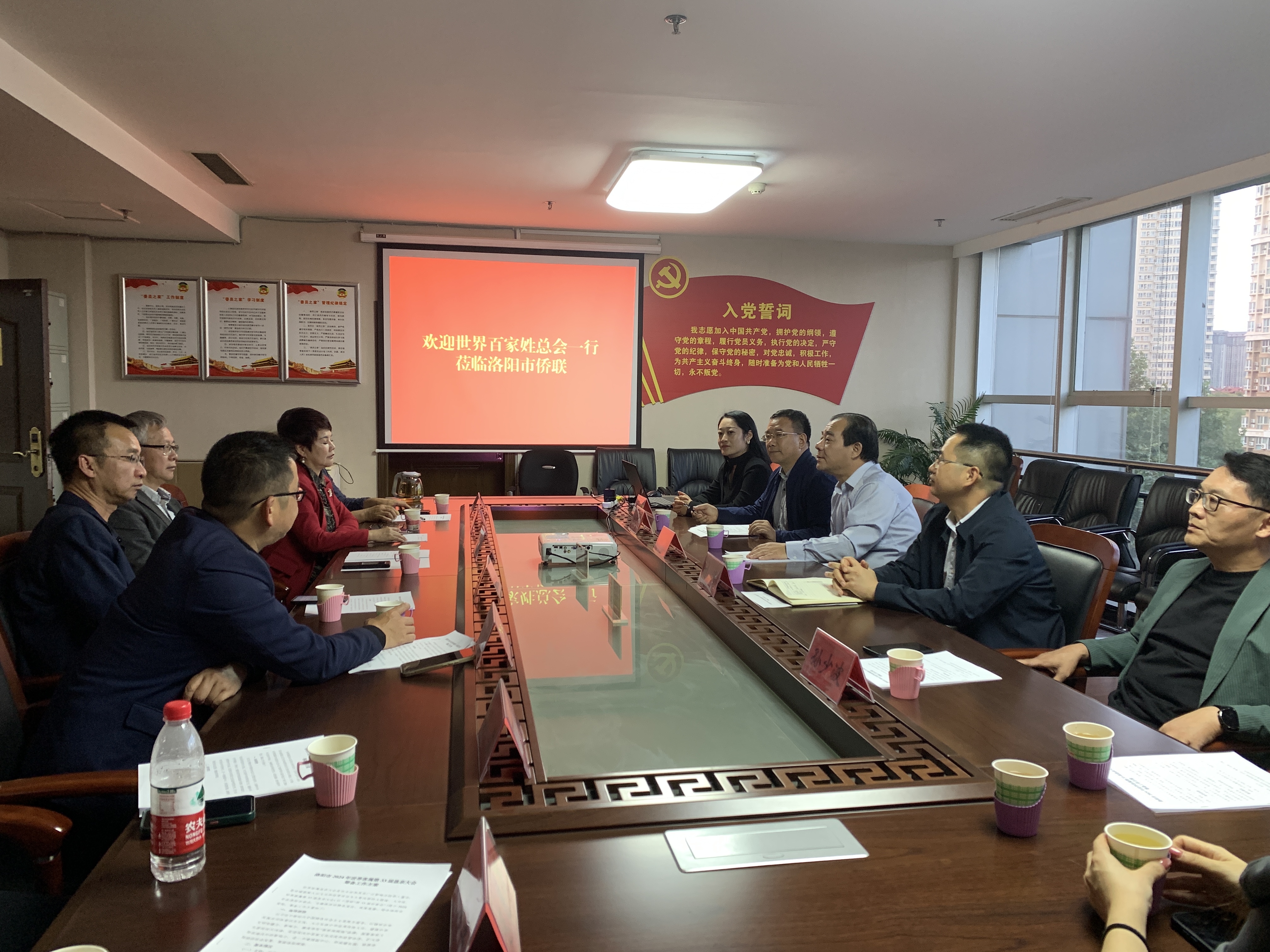 10月24日下午,世界百家姓总会主席王乐勇、执行会长许健、秘书长严凡高、巾帼委员会主席陈金妹一行到访洛阳市侨联。市侨联党组书记、主席华阳,党组成员、秘书长刘涛,四级调研员陈红超,洛阳市侨商联合会会长邝远平,执行会长孙少波与侨领们座谈交流。
