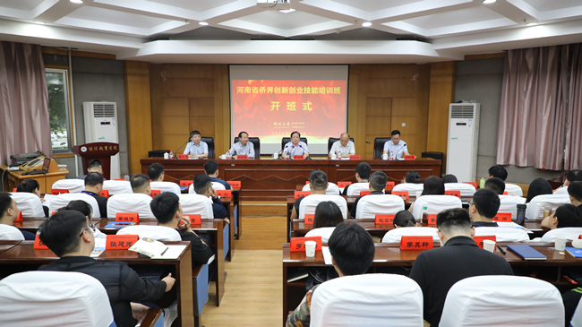 9月19日,由河南省侨联和郑州大学共同举办的全省侨界创新创业技能培训班在郑州大学开班。河南省侨联党组书记、主席杨海强,郑州大学党委常委、纪委书记、监察专员许东升,河南省侨联二级巡视员刘合生,郑州大学党校副校长、继续教育学院党委书记何建强,郑州大学继续教育学院院长、干部培训中心主任张志远出席开班仪式。全省新侨人才、各级侨青会会员、侨资企业负责人、侨商代表、归国留学人员、困难归侨侨眷群体等110名学员参加开班仪式。