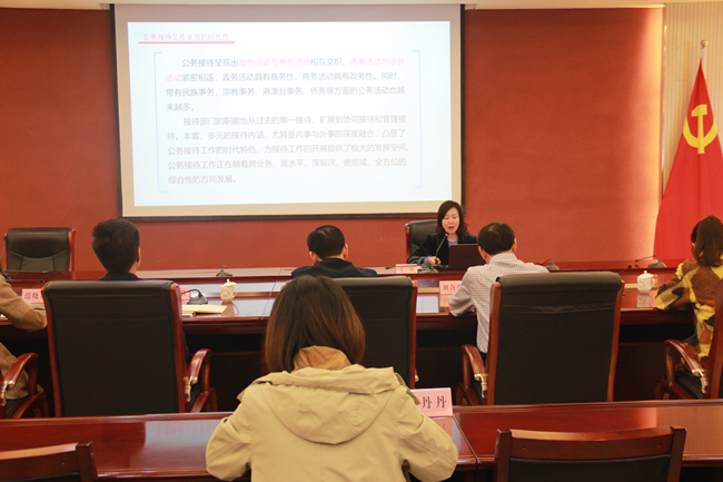 培训围绕“如何做好新时代公务接待工作”这个主题,从公务接待制度建设和如何高质量完成接待工作两个方面展开,对中央和我省公务接待的重点文件进行解读,详细讲解了迎送、陪同、公务用车、住宿、用餐、会见和合影等各个环节的具体要求、工作方法和注意事项。