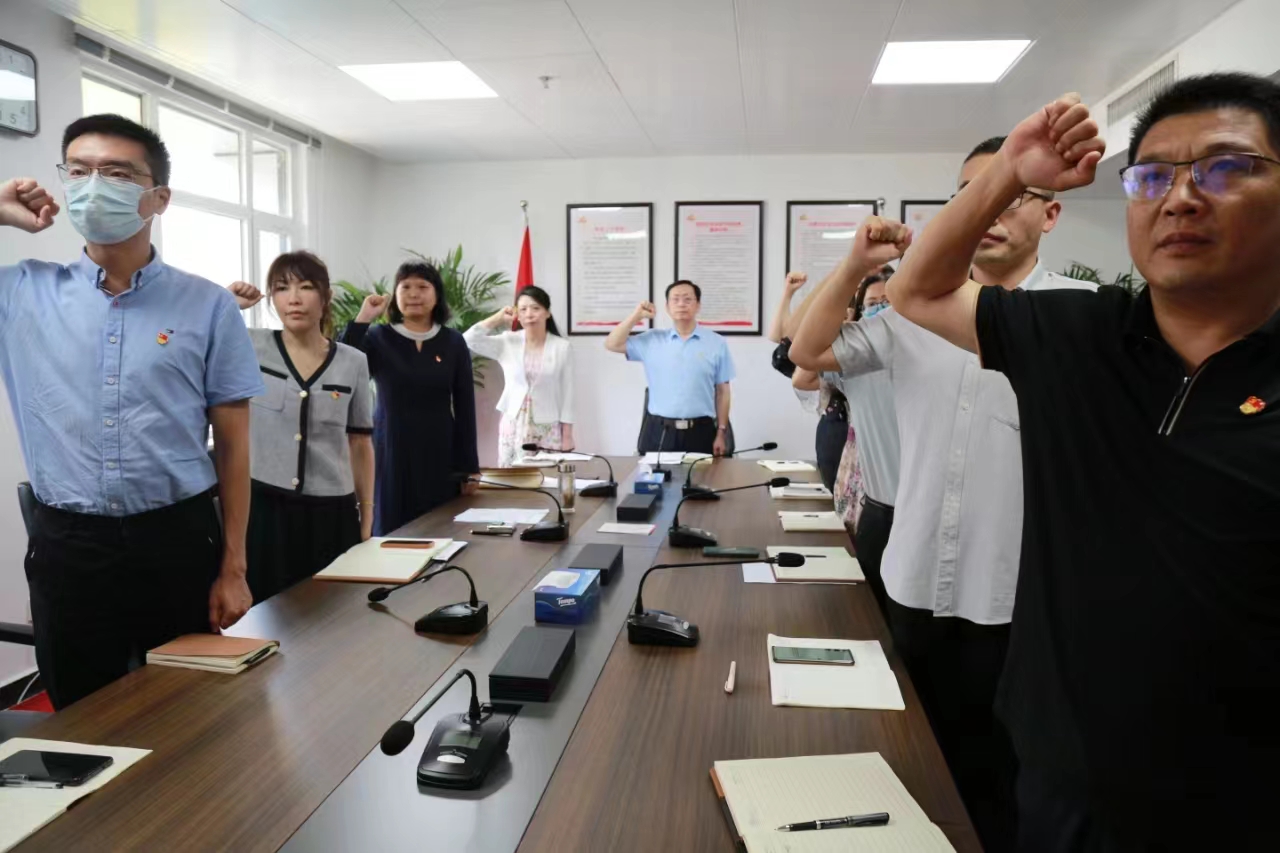 “我志愿加入中国共产党,拥护党的纲领,遵守党的章程,履行党员义务,执行党的决定……”机关全体党员面向鲜红的中国共产党党旗,举起右拳,重温入党誓词,铿锵有力的宣誓,表达了新时代共产党员的责任与担当,许下了对党忠诚、牢记使命的坚定承诺。